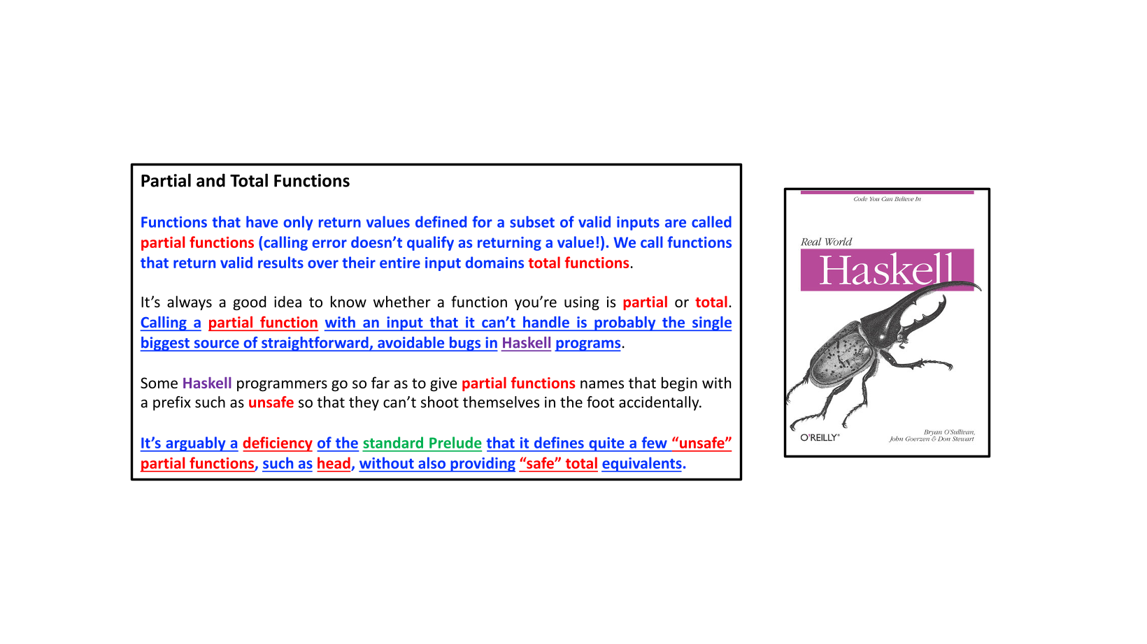 I understand fail-fast systems, it just hadn’t occurred to me that that might be the generally preferred failure mode. I suppose you have to gate one behaviour or another: You’re either guarding against empty lists so that you can safely call tail, or you’re guarding against unexpectedly empty lists …so that you can call tail. Put that way, the former does seem more reasonable.