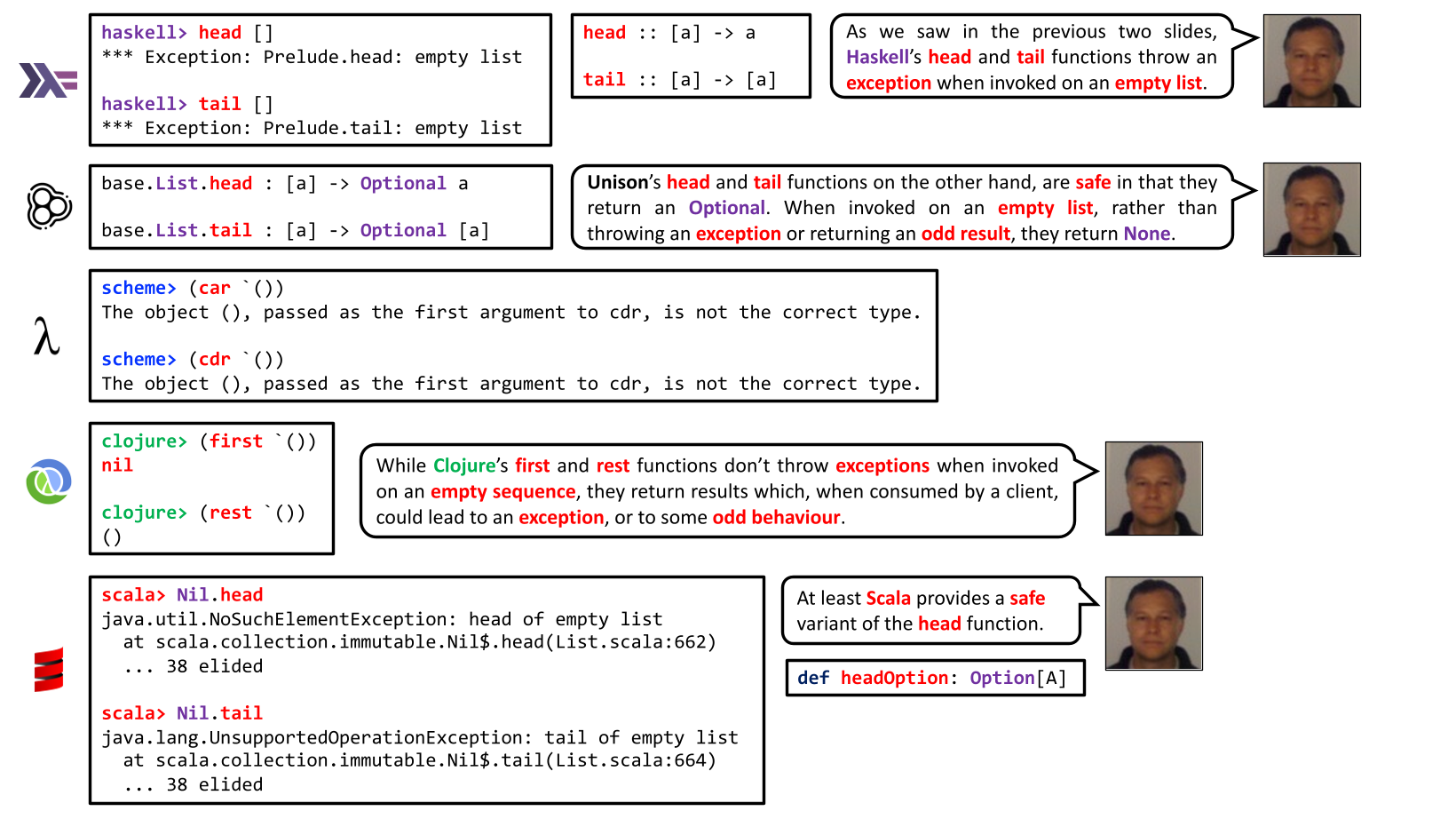 However, it would never occur to me to substitute tail with drop(1) in order to get a different outcome, and I find throwing an exception here to be a surprising behaviour. I believe that if people really cared about the length of their list that much, they’d do a manual length check or test the requirement by some other means.